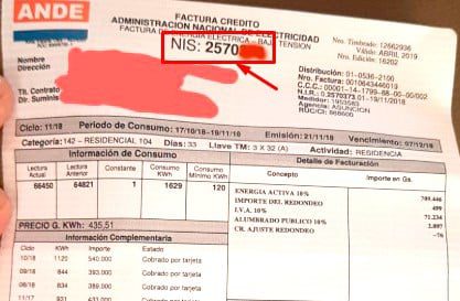 Con tu NIS puedes conocer la fecha de lectura del medidor de la última factura de Ande emitida, la lectura registrada y el consumo resultante en kWh.