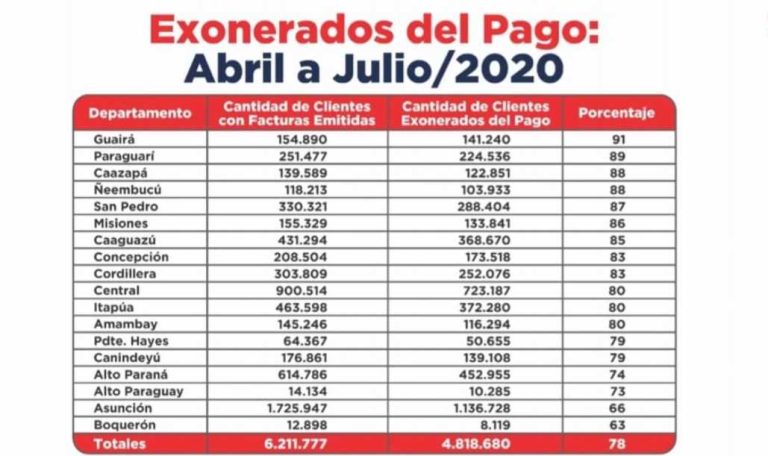 Dentro de esta situación están un promedio de 1.200.000 clientes, es decir, este beneficio alcanza a 1.200.000 familias paraguayas.