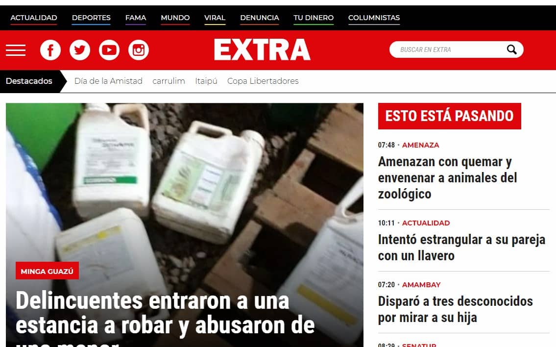 El diario Extra también además de ser un medio noticiario, también destaca informaciones referente a la farándula e informaciones policiales del Paraguay.