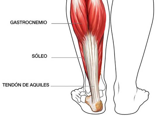 El gastrocnemio es el más grande de los dos músculos y se origina en la parte posterior de la rodilla. El sóleo se origina en la espinilla y se inserta en el tendón de Aquiles. Ambos músculos trabajan juntos para producir la flexión plantar.