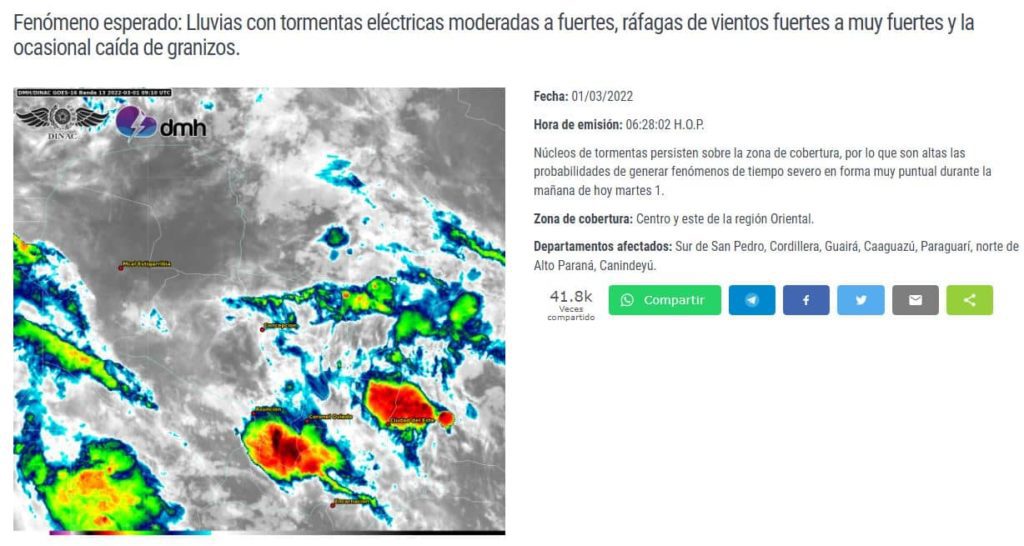 Pronóstico del tiempo para hoy Martes 01 de Marzo y mañana: Para esta jornada se prevé que lluvias con ocasionales tormentas eléctricas persistan.