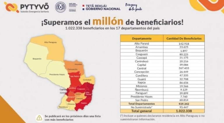 Subsidio Pytyvo llegó a más de un millón de beneficiarios: Ya están en el listado de beneficiarios de Pytyvô. Dicho programa embolsa a cada uno 548 mil guaraníes para compras de artículos de primera necesidad.