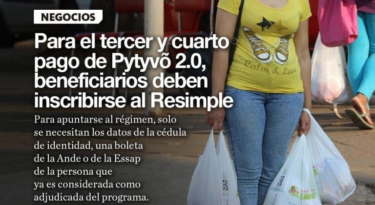 Tercer y cuarto pago del Pytyvo 2.0: El Ministerio de Hacienda dio a conocer que para las personas que serán beneficiadas con el tercer y cuarto pago del Pytyvo 2.0 deberán inscribirse al régimen tributario Resimple.